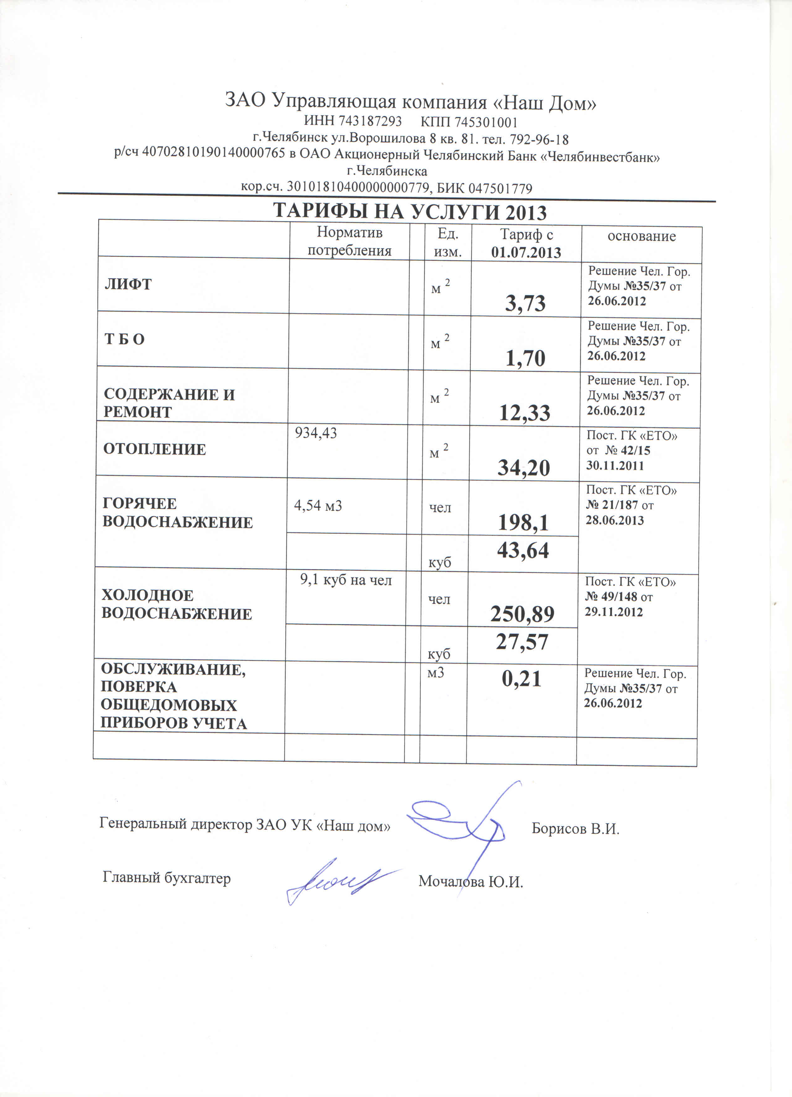 тарифы